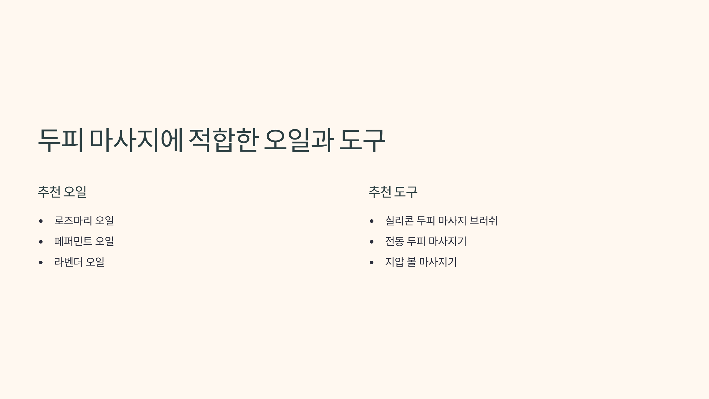 두피 마사지를 더욱 효과적으로 하고 싶다면 오일이나 마사지 도구를 활용해 보세요.
