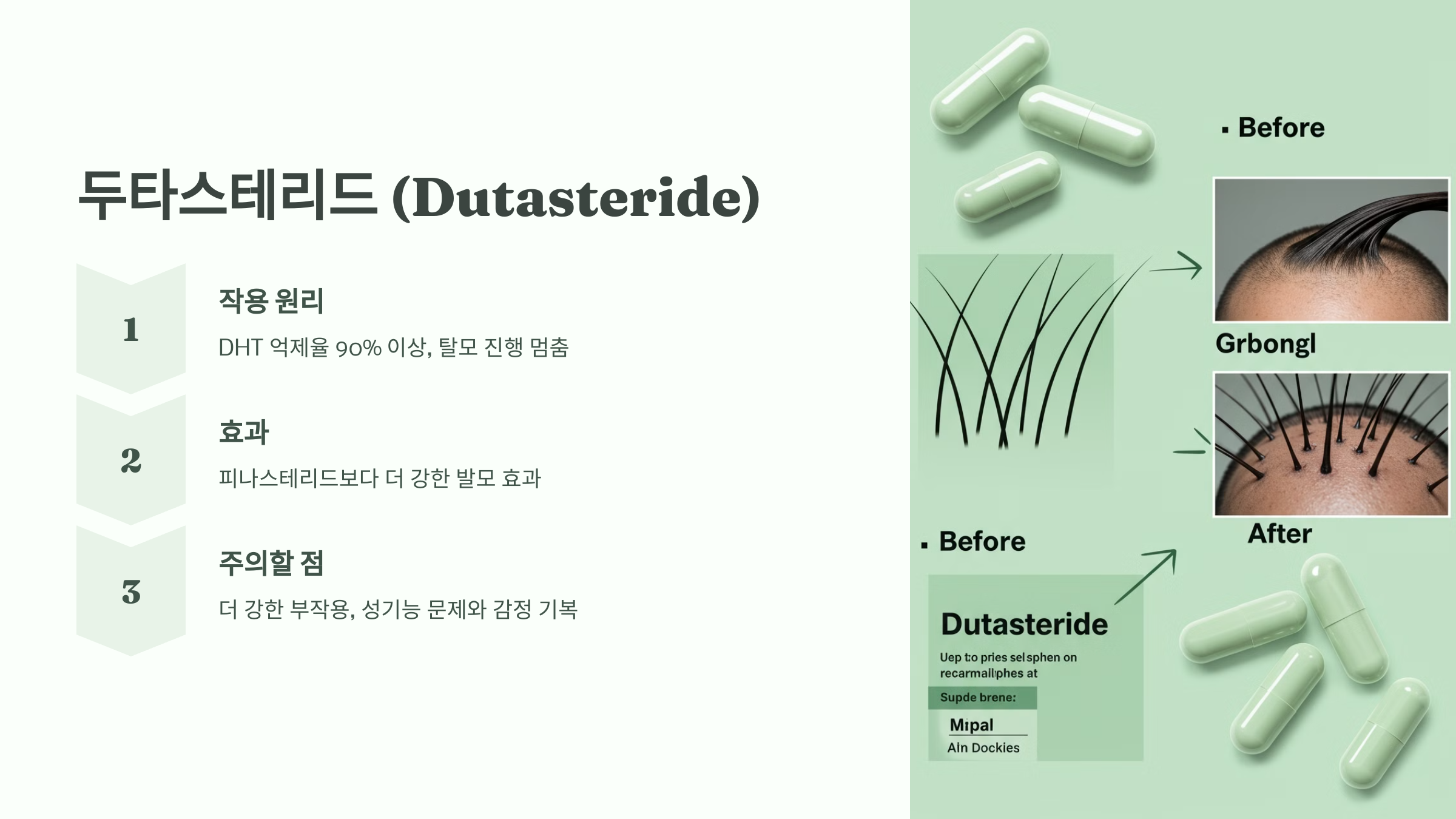 피나스테리드보다 강력한 탈모 치료제예요. DHT를 더욱 강력하게 억제하기 때문에 효과가 더 빠르고 강력합니다.