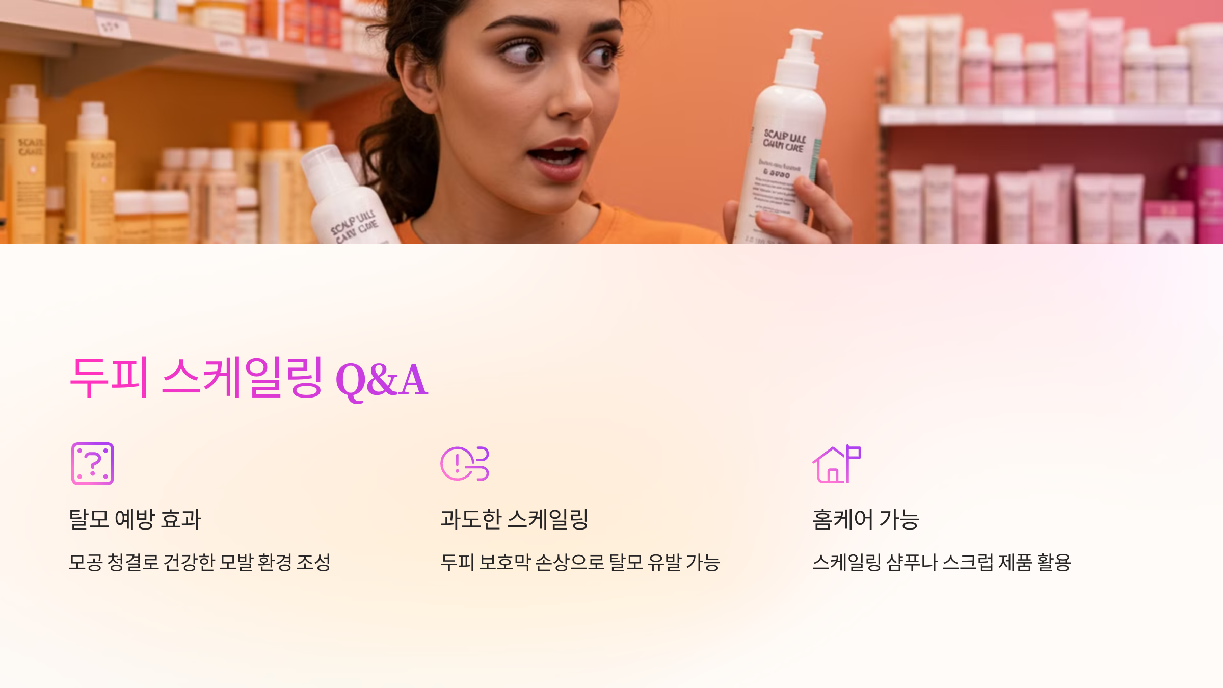 👉 과도한 스케일링은 두피 보호막을 손상시켜 오히려 탈모를 유발할 수 있습니다.