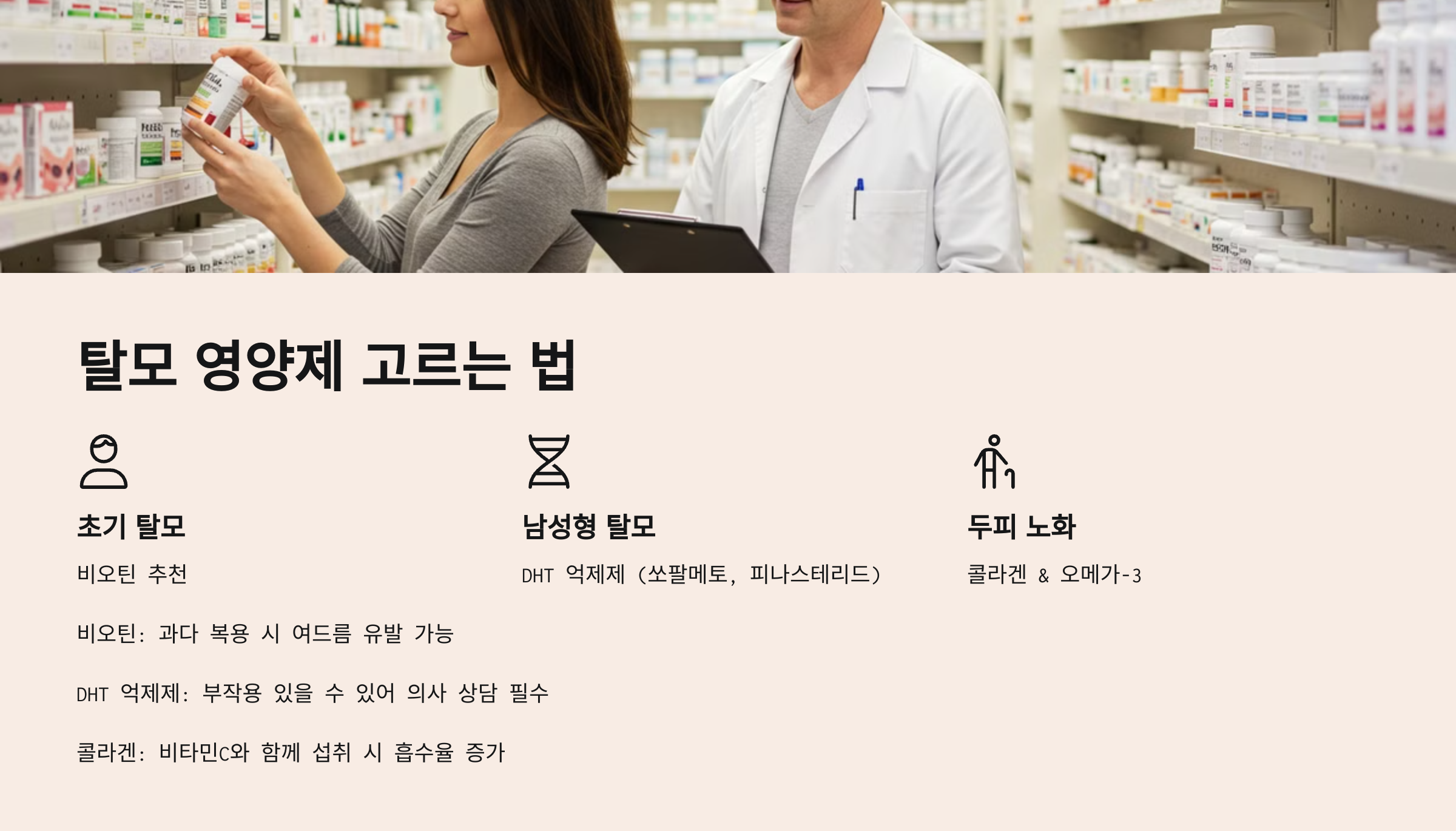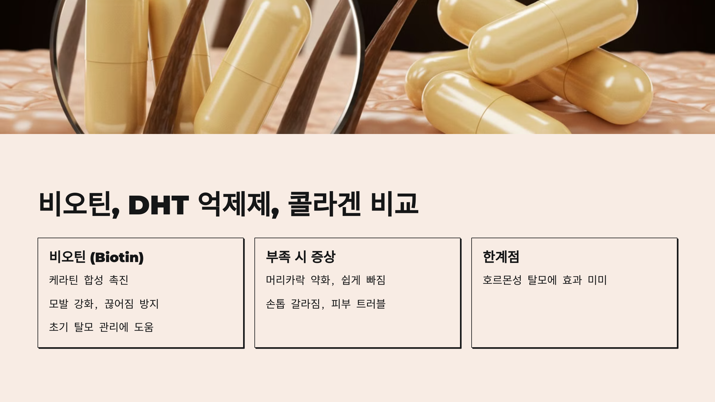 📌 비오틴, DHT 억제제, 콜라겐 – 뭐가 가장 효과적일까?