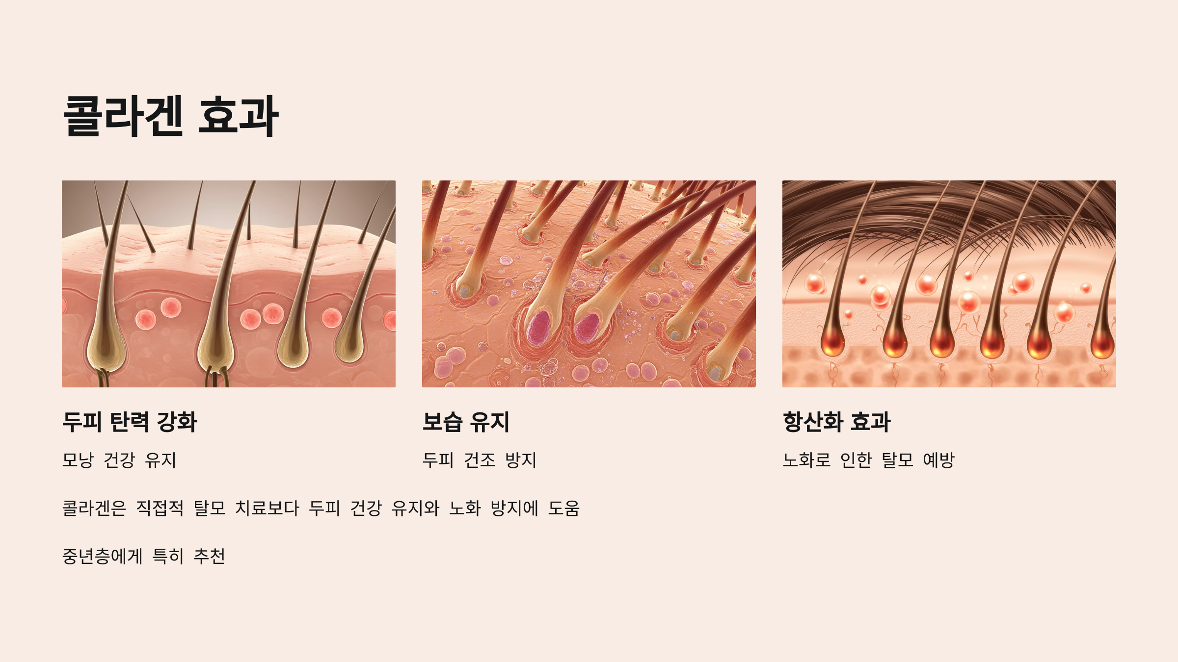 3️⃣ 콜라겐 – 두피 탄력 & 건강한 모발 유지!
