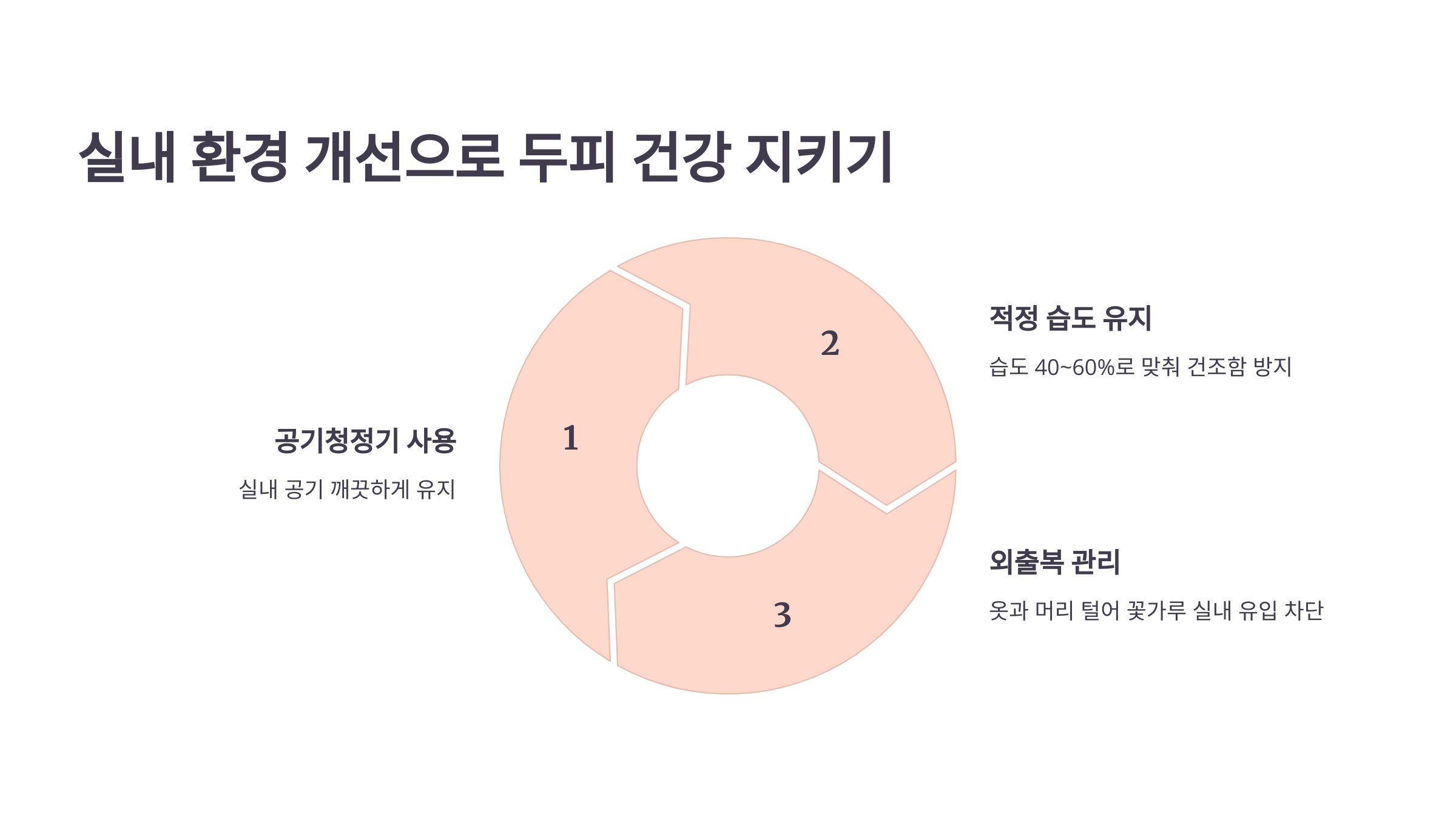 실외에서 두피를 보호하는 것도 중요하지만, 실내 환경 관리도 신경 써야 해요.