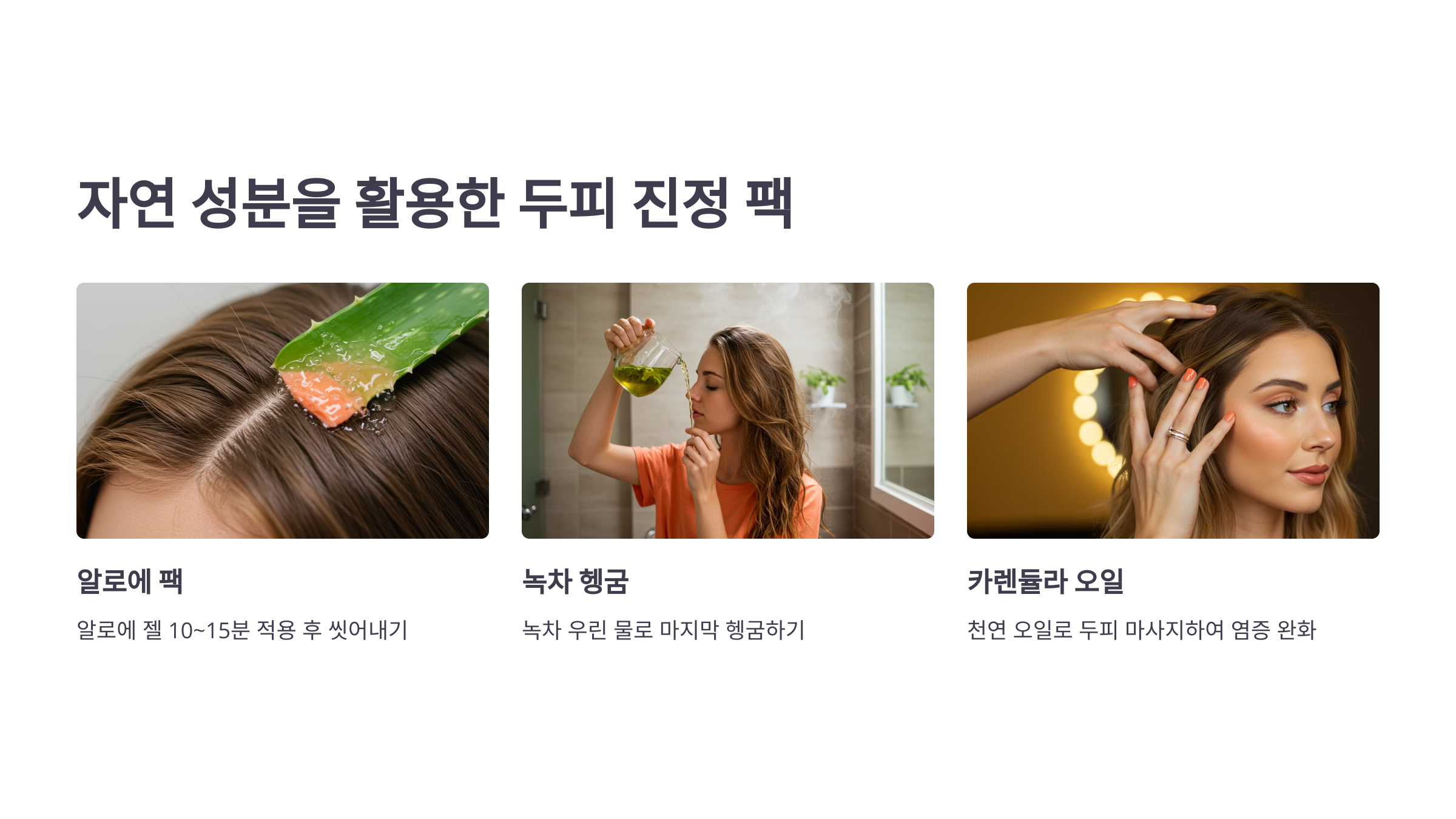 두피 쿨링 제품이나 자연 성분을 활용한 진정 팩을 활용해 보세요.